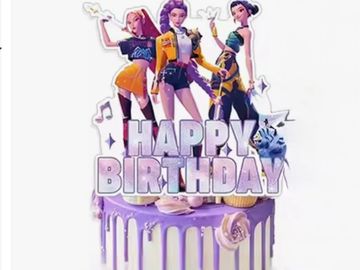 Vanilla , red velvet, rainbow, vegan or chocolate drip cake or similar with KPop or themed topper and toppings. Please note Custom decor price on application.